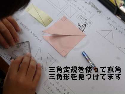 今日は三角定規を合わせて,直角三角形を見つける学習でした。