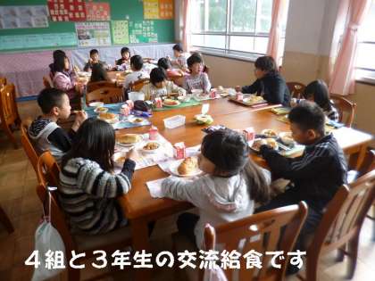 今日は,4組と3年の子どもたちが交流給食をしました。