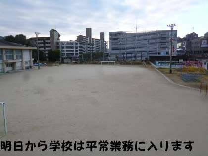 いよいよ明日1/6(月)から,学校は再開(平常業務)します。運動場は開放していますので,遊びにきてください。4年生は,学習会もありますね。