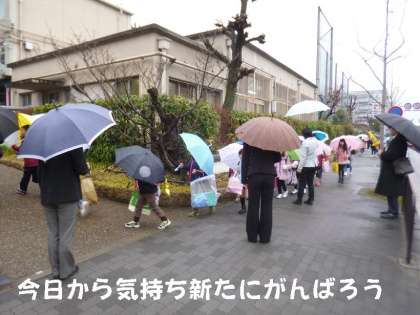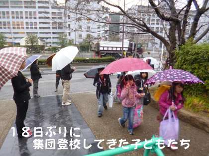 あいにくの雨になりましたが,子どもたちは18日ぶりに,元気に集団登校してきました。