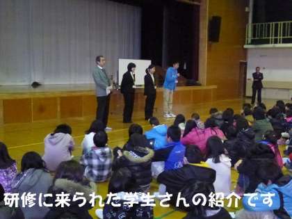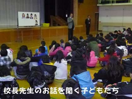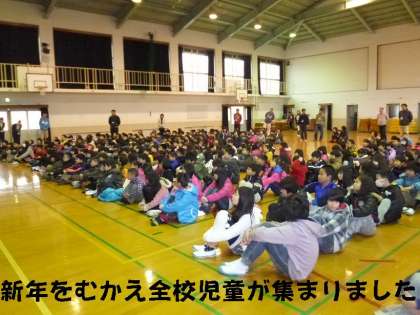 最初に校長先生と大きな声で新年のあいさつをしました。そして,本校に研修に来られている学生さんの紹介と,何事もあきらめず努力することの大切さのお話があり,平成26年(2014年)のスタートを切りました。