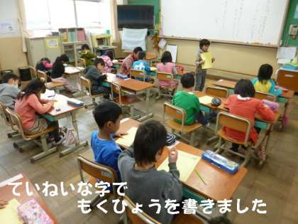 先生といっしょに,今年の目標を考えました。自分に合った目標?やりとげられる目標?を目標カードに書きました。
