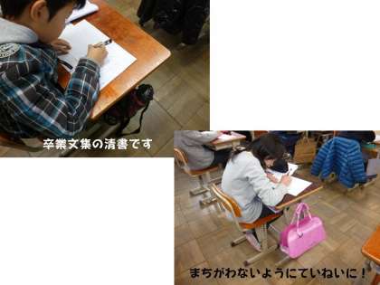 今日は,復習テストと卒業文集の清書をがんばっていました。