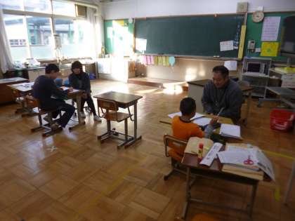 それぞれの課題プリント(算数)を先生と一緒にがんばっていました。