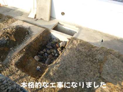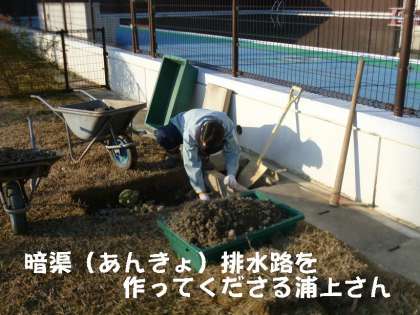 年末から運動場の側溝の土砂を取り除いていただいていた浦上さんが,そのついでにと暗渠排水路設置の工事を引き受けていただきました。