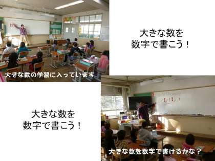 算数で「大きな数」の学習をしています。今日は,大きな数を数字で書けるようにがんばりました。
