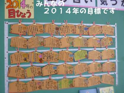 後ろも掲示版には,子どもたちの新年の目標が掲示されています。がんばれ3年生!