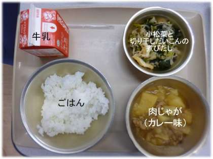 「小松菜と切り干しだいこんの煮びたし」「牛乳」