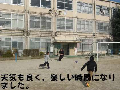 6年のページ ALTのマシュー先生と給食・サッカーを楽しみました