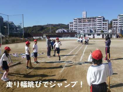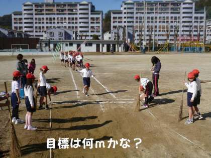 子どもたちは,上着を脱ぎ捨て,走り幅跳びに挑戦しました。