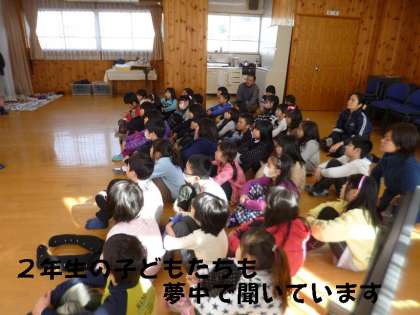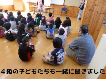 1年に続いて,2年生でもエプロンシアターをしていただきました。4組の子どもたちも一緒に参加して,楽しいお話を聞きました。