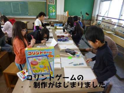 毎年3年生が作品展に向けて制作する「コリントゲーム」作りがはじまりました。