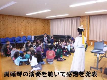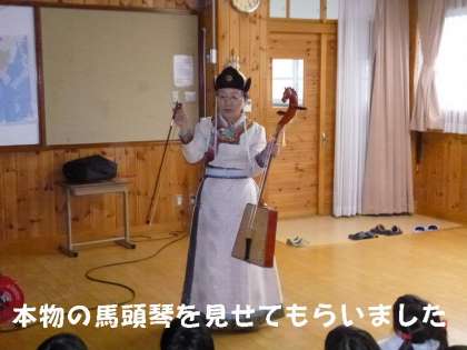 その学習に合わせて,今日はモンゴルのナランフさんをお招きして,モンゴルの生活の様子や「馬頭琴」について教えてもらいました。