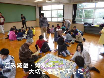 すごろくをたのしみながら,子どもたちがごみ減量の大切さを学んでいきます。