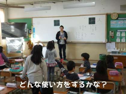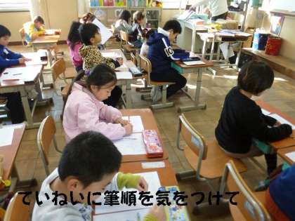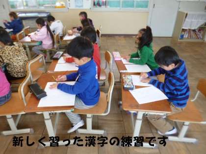 国語の時間に1組も2組も新しく習う「新出漢字」の練習をしていました。