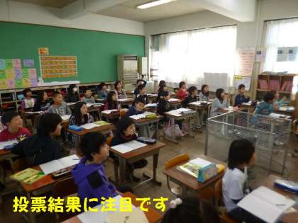 投票結果に注目!子どもたちはワクワク楽しく,授業の集中していました。