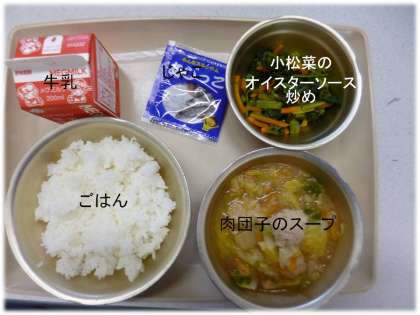 「小松菜のオイルソース炒め」「じゃこ」「牛乳」