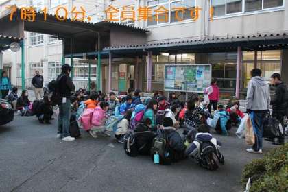5,6年生の雪山チャレンジ体験に参加する子どもたちが,