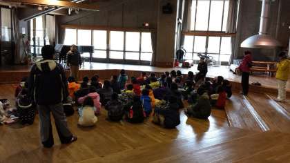 オリエンテーションホールで,活動前のオリエンテーションを