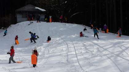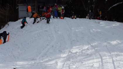 歓声をあげながら,何度も何度も,そりを楽しんでいます。