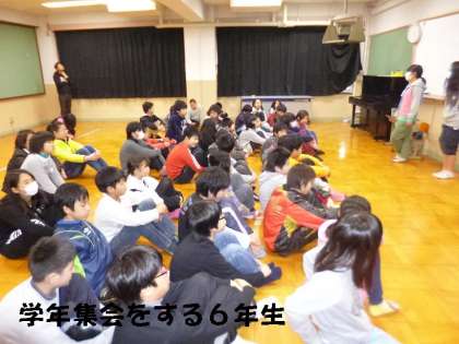 今日は学年集会を開きました。「6年生を送る会」など,卒業に向けての児童会行事に6年生として,お返しに発表する歌などをみんなで話し合いました。