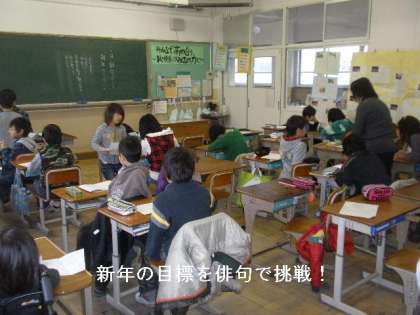 新年最初の授業は,どちらのクラスも新年の目標を一人一人考えました。校長先生の朝会での話をしっかり聴いていたのか?「早寝・早起き・朝ごはん」を目標にしている子どもたちも多かったです。俳句での目標書きにも挑戦しました。