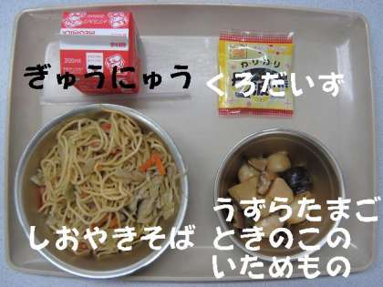 「塩焼きそば」「うずら玉子ときのこのいためもの」