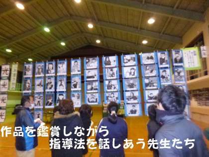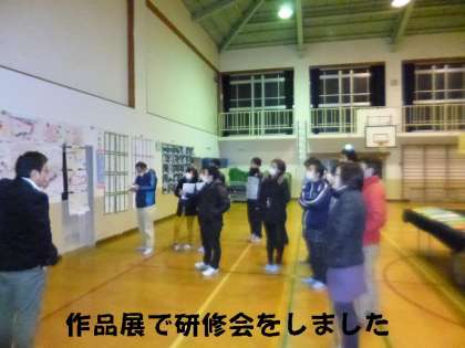作品を撤収する前に,夜遅くから先生たちが子どもたちの作品を見ながら,指導法の研修会をしました。寒い中でしたが,いい勉強になりました。