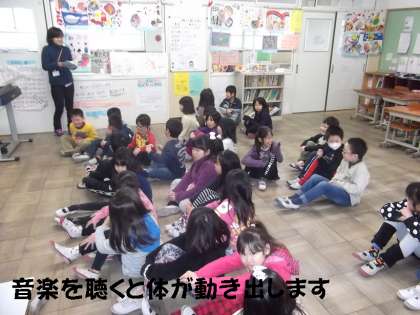 合同の音楽で,とてもリズミカルな音楽を聴きました。思わず体が動き出し踊りたくなる曲でした。先生も腰をふって踊っていました。