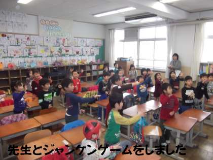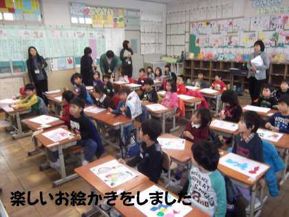 みんなでジャンケンゲームをして盛り上がり,そして,静かにお絵かきをして,半日の小学校生活を楽しみました。