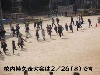 2/26(水)の持久走(マラソン)大会まで,あと1週間です。体育の時間にコースの試走もはじまっています。
