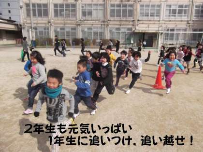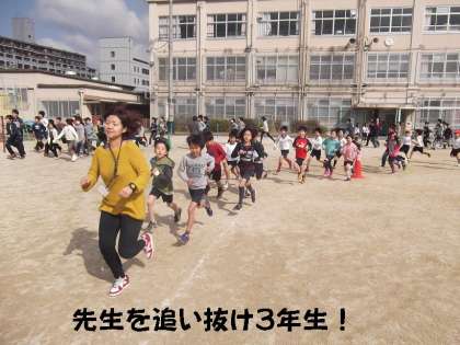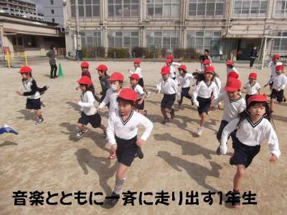 今日も元気に中間マラソンです。音楽がなりはじめると一斉にスタートです。