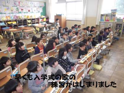 午後からの音楽の時間に,早くも入学式の歌の練習がはじまりました。