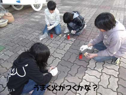 まずチャコール(炭)に火をつけることからはじめ,その後マシュマロをあぶりました。