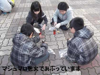 今年度最後のクラブ活動です。野外活動クラブは,中庭で「マシュマロ焼き」に挑戦しました。