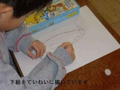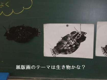 2月の作品展に向けて紙版画作りがはじまっています。動物をテーマに下絵を描いています。子どもたちは図鑑や絵本を参考にして,好きな動物を描いています。