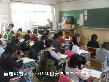 テストや宿題のプリントの答え合わせは,毎日の日課です。一人一人発表したり,自己採点したり・・・。先生に言われるまでもなく,自分たちで進めています。3年生の力はすごいです。