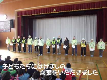 最後に,子ども見まもり隊の方から,子どもたちに励ましの言葉もいただきました。