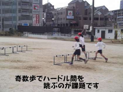 「ハードル走」は,高学年になると運動会種目になります。ハードル間を奇数歩でとぶことがポイントです。