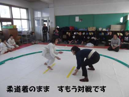 柔道での対戦のあとは,すもうでの勝負です。