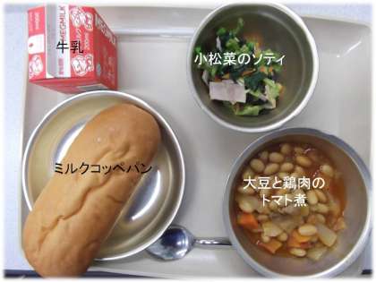「ミルクコッペパン」「大豆と鶏肉のトマト煮」