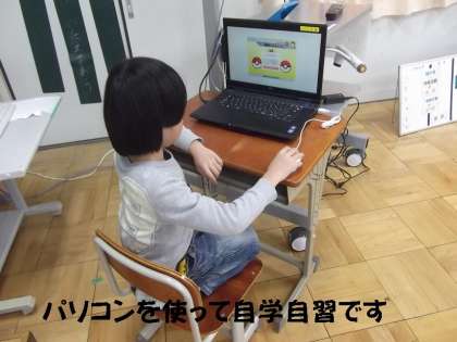 5年6年生は,図形の問題のドリルを,4年生はパソコンを使って,そして2年生は計算問題をがんばっていました。