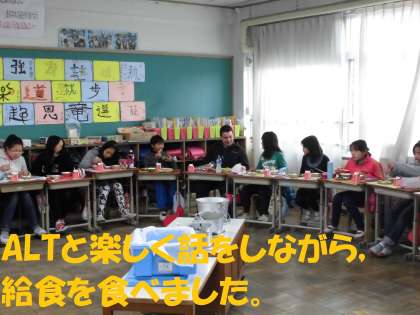 6年のページ ALTと給食を食べました