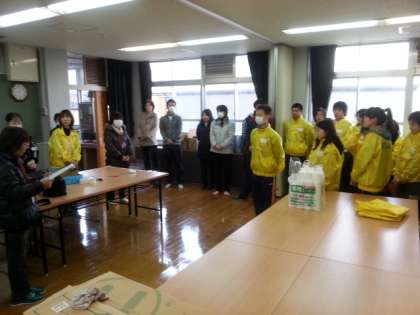 学校の代表の5年生,6年生の計画委員のメンバーと栗陵中学校の生徒会の人たちと,今日の打ち合わせをしています。