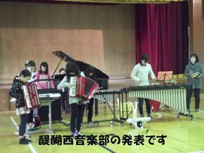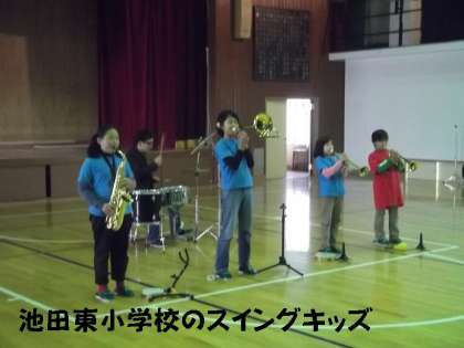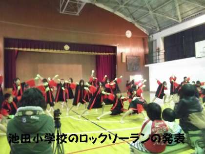 クリーンキャンペーン終了後,栗陵中学校玄関前で,栗陵中学校ブラスバンド部の演奏,体育館では,3校の小学校の発表がありました。そして,おいしい豚汁とだんごをごちそうになりました。