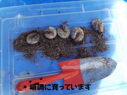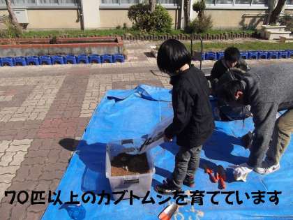 今日は,朝からカブトムシの幼虫の腐葉土かえをしました。現在70匹以上の幼虫が,順調に大きく育っています。
