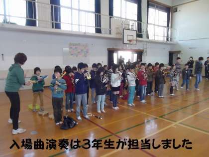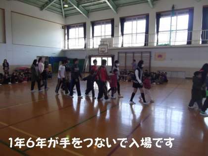 まずは,3年生のリコーダー演奏をBGMにして6年生が1年生と手をつないで入場してきました。そして,はじめの言葉は5年生が担当し,はじまりました。