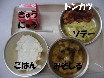 「ごはん」「トンカツ」「ソテー」「牛乳」