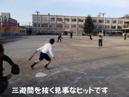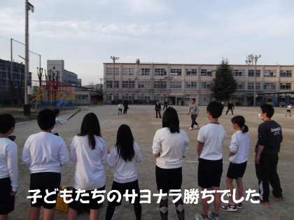 最初は5−0で先生チームがリードしていましたが,じわじわ子どもたちが点を入れ,最後はサヨナラヒットで5−7で子どもたちの勝利でした。