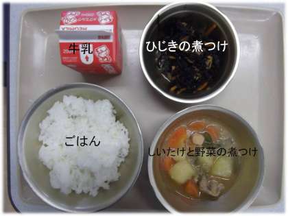 「ひじきの煮つけ」「牛乳」